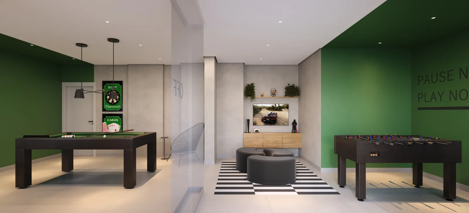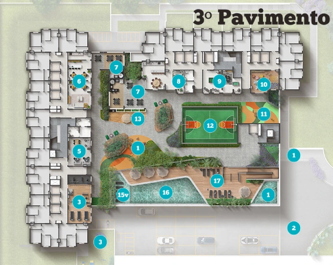 Espaços planejados para diversão, descanso e convivência.
