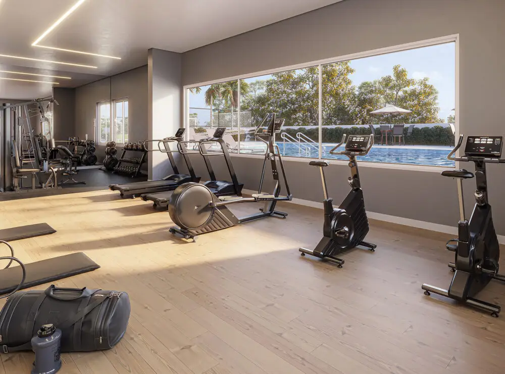 Com ampla área de lazer que inclui piscina, fitness, playground, churrasqueira e espaço pet